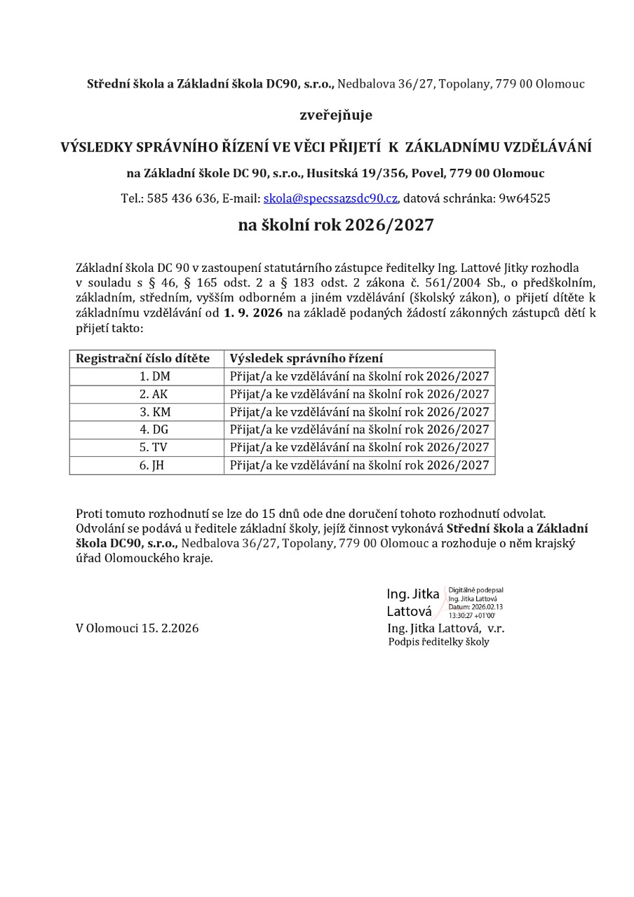 Základní škola DC90, s.r.o., Husitská 356/19 Povel 779 00 Olomouc