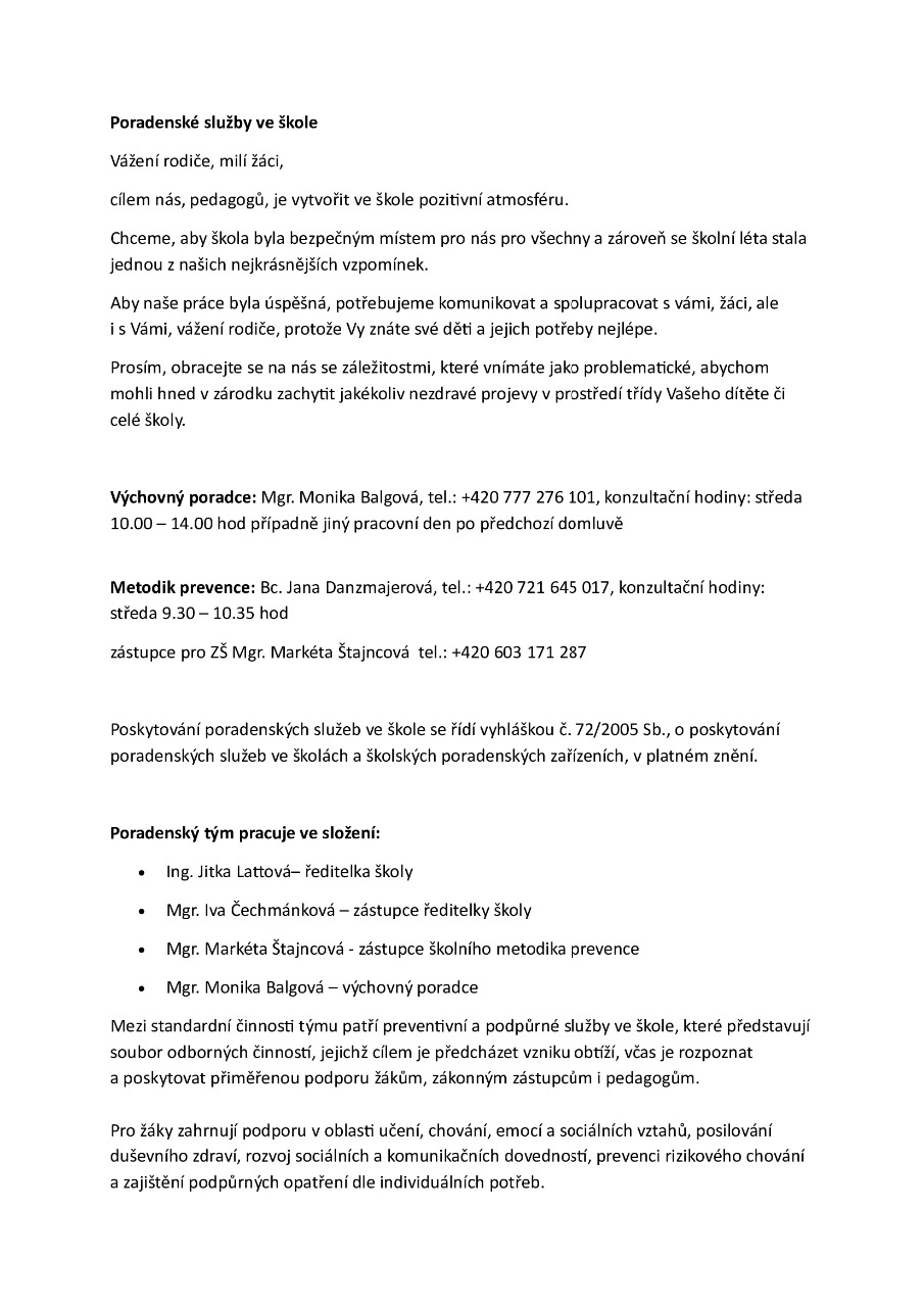 ŠKOLNÍ PORADENSKÉ PRACOVISTĚ