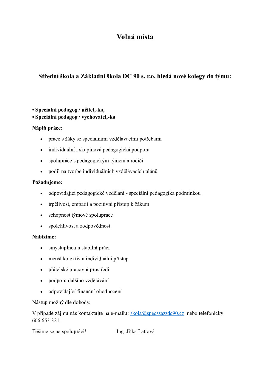 VOLNÁ PRACOVNÍ MÍSTA